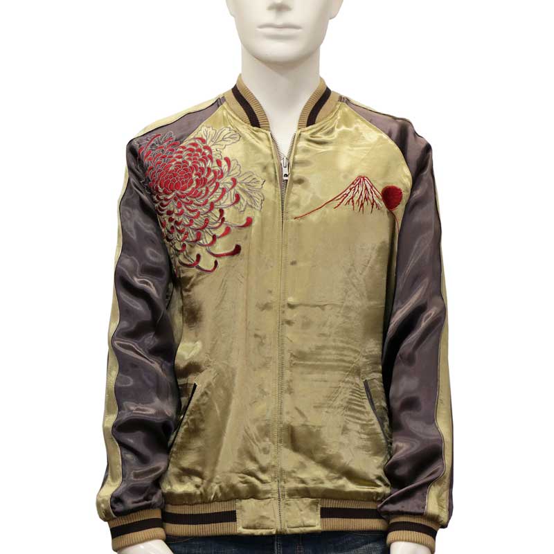 【ブランド名】 花旅楽団/ハナタビガクダン 【商品名】 鯉と金太郎柄 刺繍 和柄スカジャン 【品番】 SSJ-518 【カラー】 ブラウン×チャコール 【素材】 表:レーヨン100%サテン 裏:ポリエステルサテン100% 【サイズ】 S:着丈57/身幅48/裄丈80/ M:着丈59/身幅52/裄丈83/ L:着丈62/身幅56/裄丈85/ XL:着丈64/身幅60/裄丈87/ XXL:着丈66/身幅64/裄丈90/ 【デザイン】 花旅楽団から和柄スカジャンの登場。