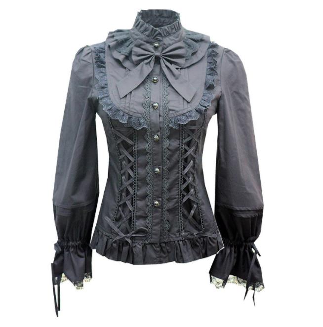 Lolita系 ロリータ ブラウス シャツ 長袖 トップス ホワイト ブラック 萌え レディース ゴスロリ ロリータファッション 変装 トップス ホワイト ブラック ブルー ワインレッド