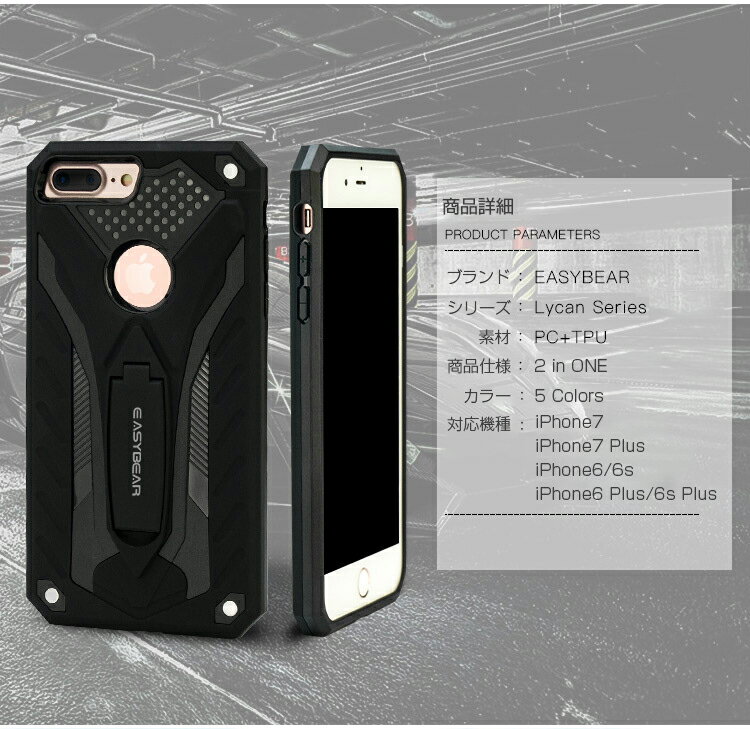 ■対応機種: ●iPhone (apple) iPhone8/7 iPhone8Plus/7Plus iPhone6 iPhone6s iPhone6Plus iPhone6sPlus ■カラー ・レッド・シルバー・ブラック・ブルー・ローズ ■材質: PC+TPU 『Lycan Series 独立スタンド機能付 スマホケース』 手軽な動作で簡単に縦にも横にもスタンド機能として 使えるのが特徴のスマホケースです。