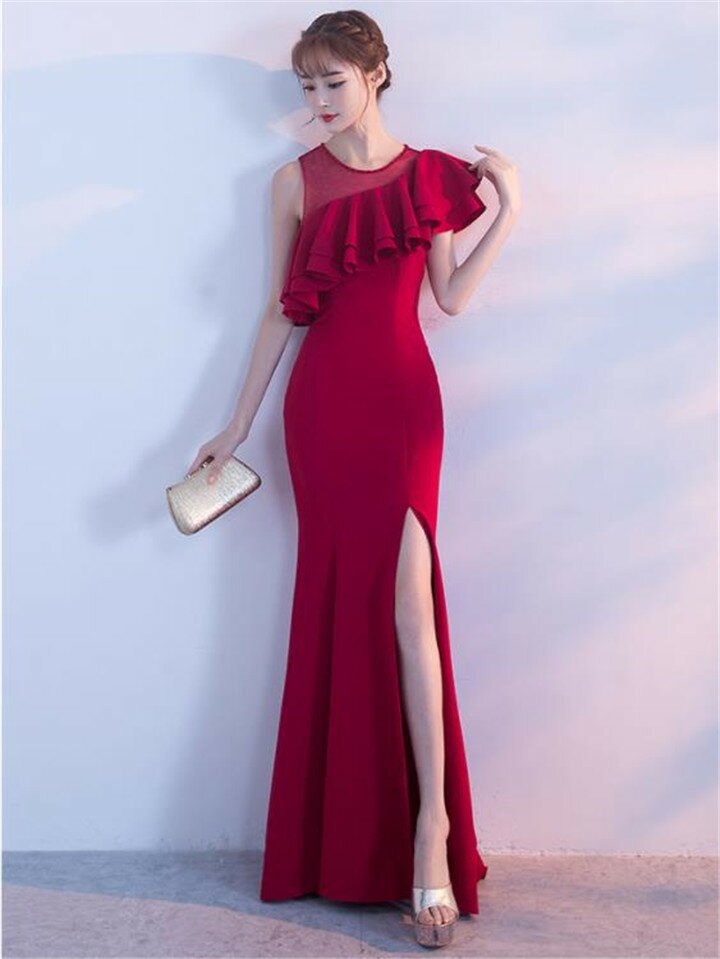 ワンピース スプリット セクシー イブニングドレス ロングセクション フィッシュテールスカート(T)